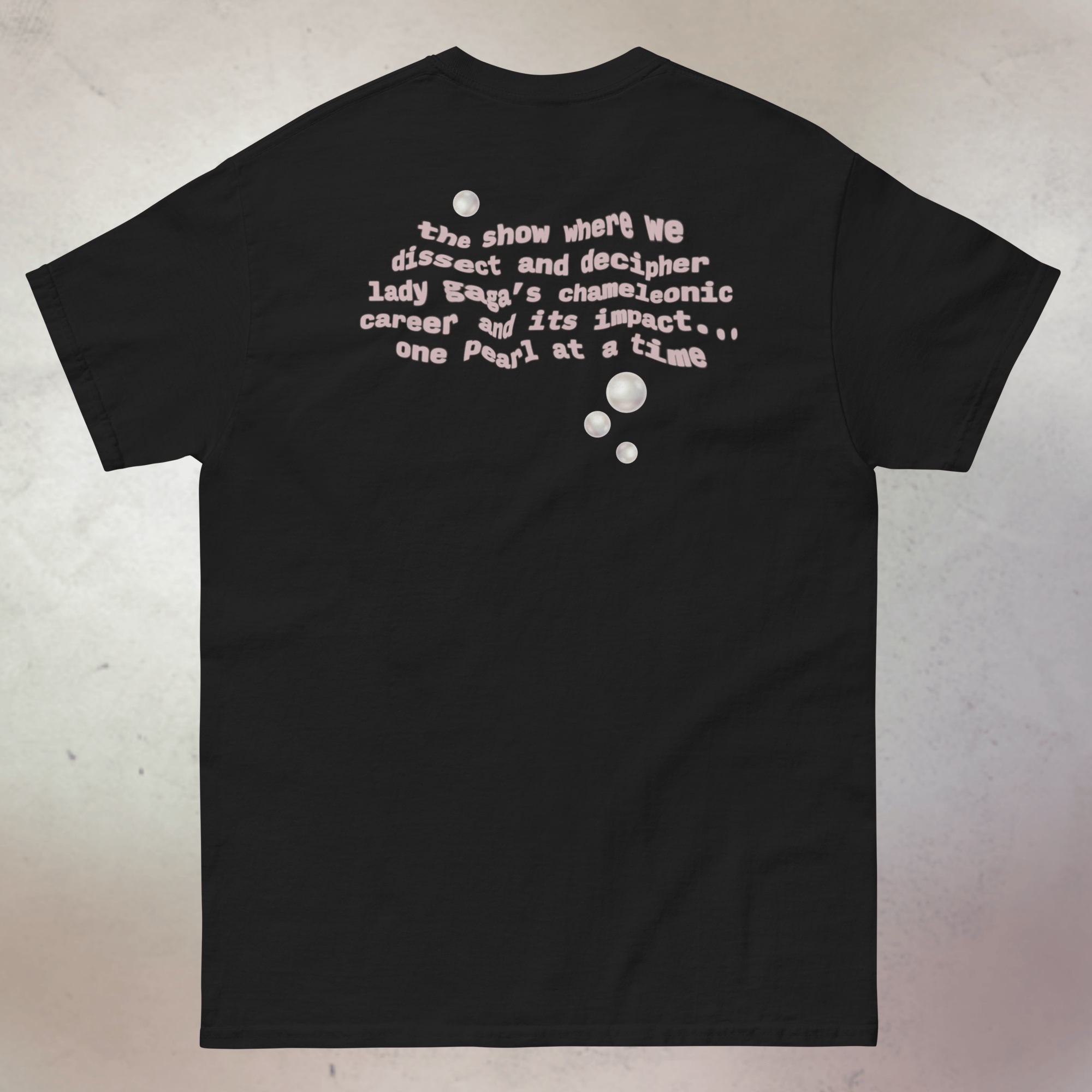 Our very first merch item! Enjoy our classic pearl logo (front) paired with our show intro (back).